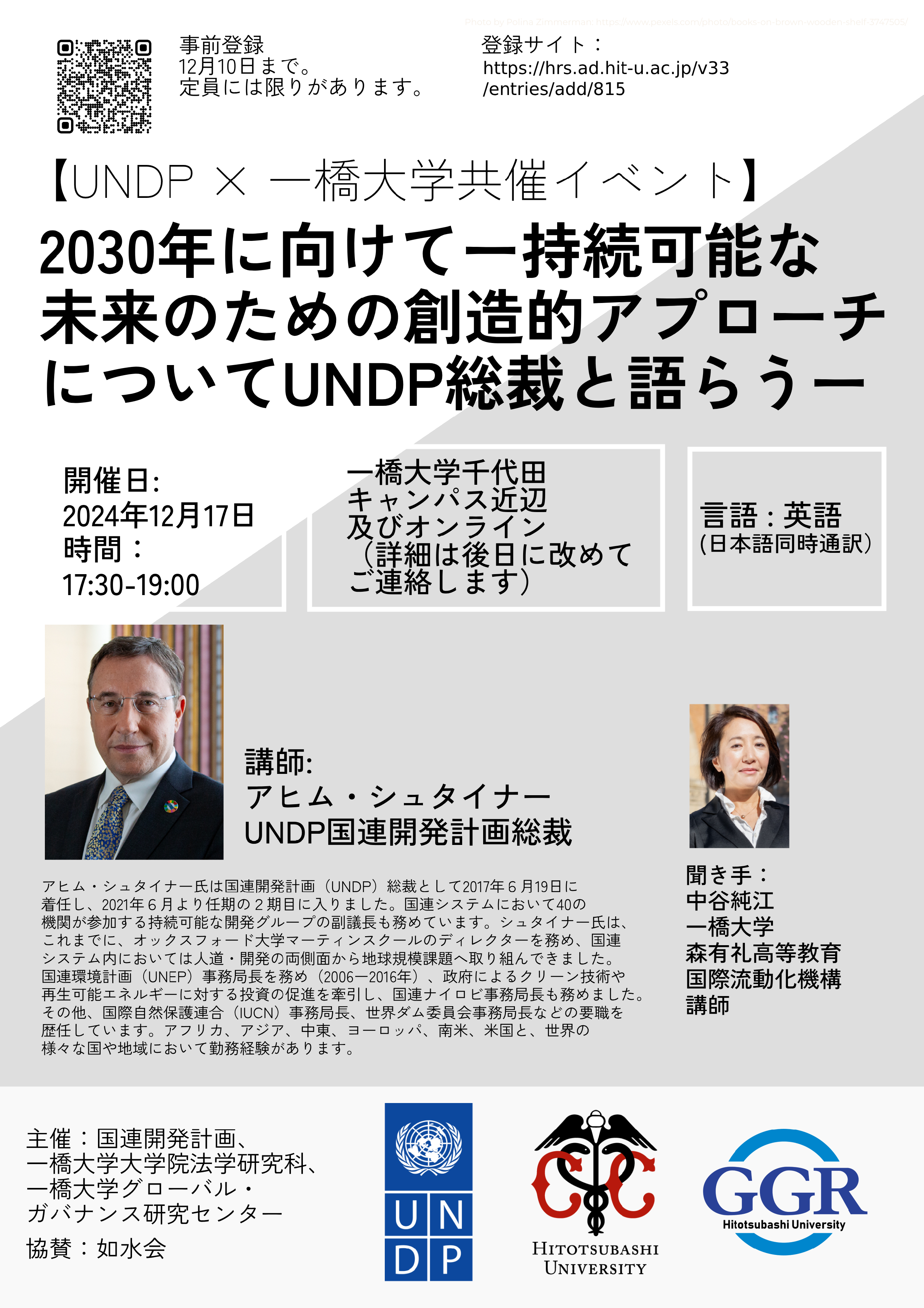 「UNDP × 一橋大学(法学研究科、GGR)共催イベント 国連開発計画(UNDP)総裁講演会」を以下の通り開催致します。参加には事前登録が必要です。