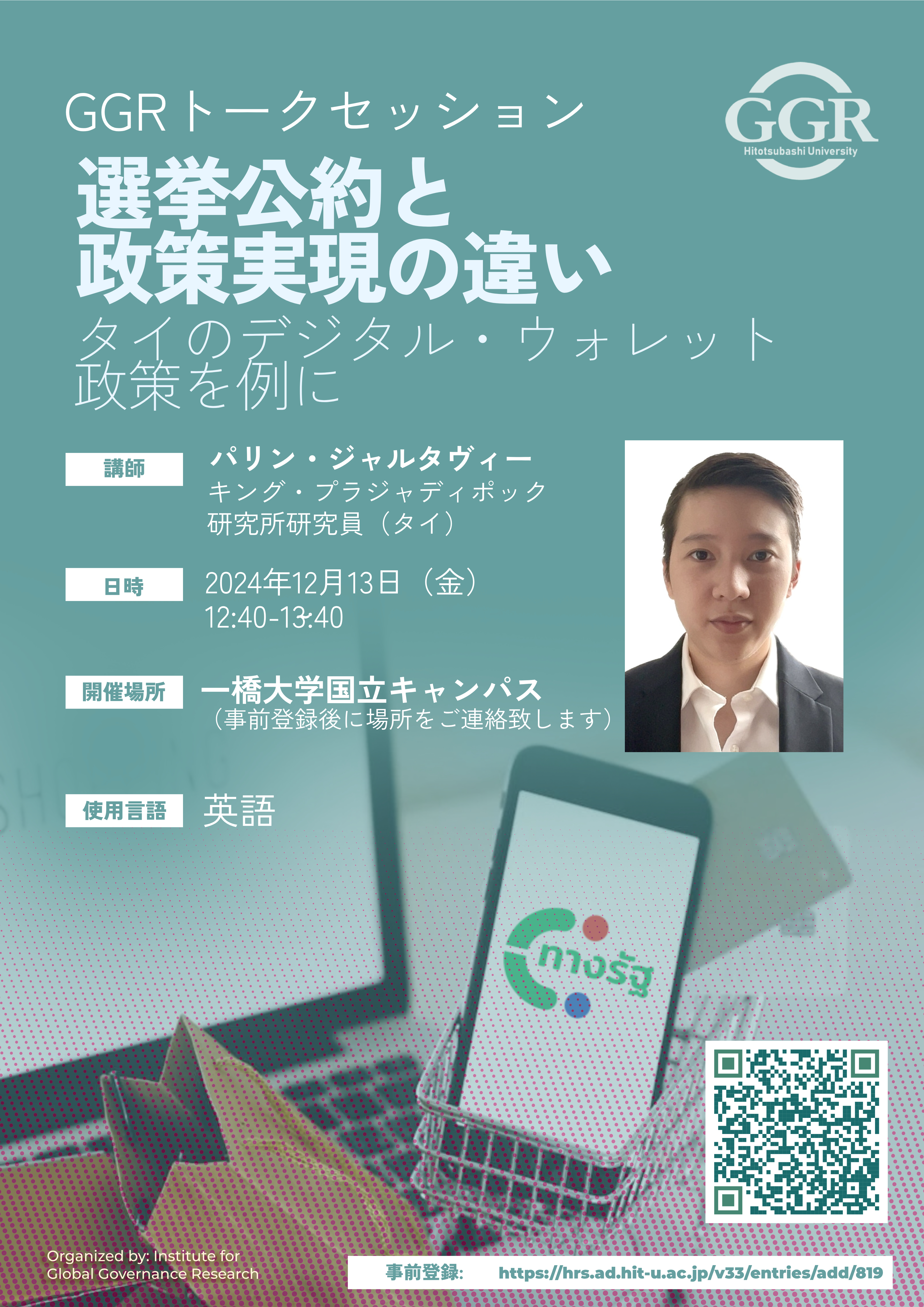 【GGRトークセッション】選挙公約と政策実現の違い: タイのデジタル・ウォレット政策を例に