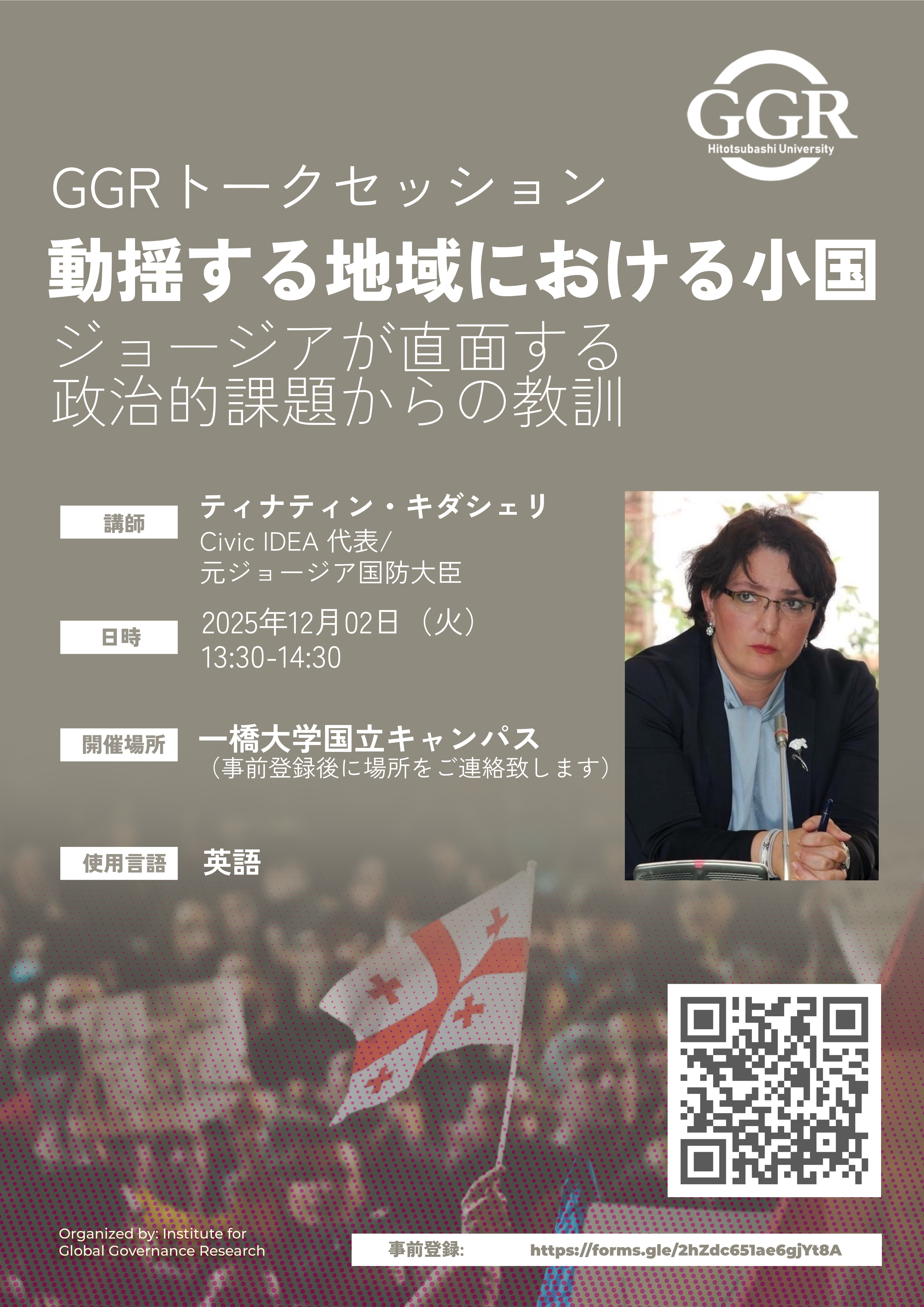 ▪️題目: 動揺する地域における小国-ジョージアが直面する政治的課題からの教訓
