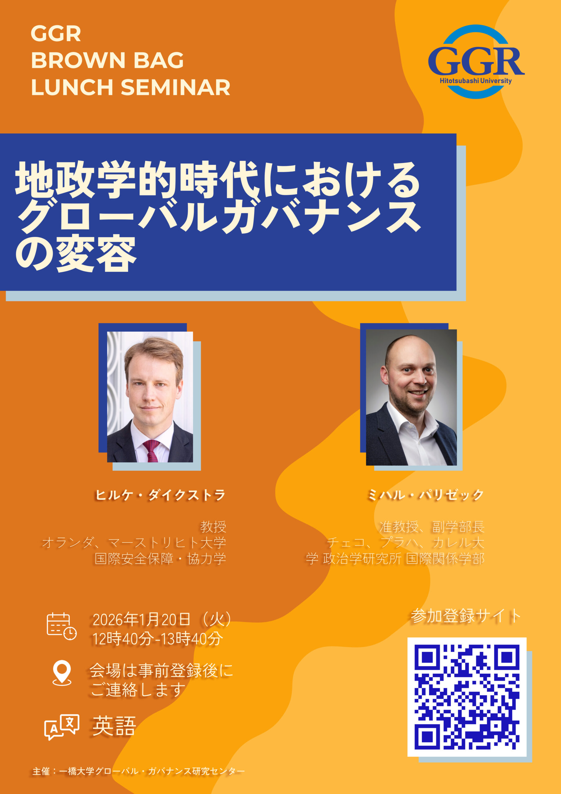 ・題目:【GGRブラウンバックランチセミナー】地政学的時代におけるグローバルガバナンスの変容