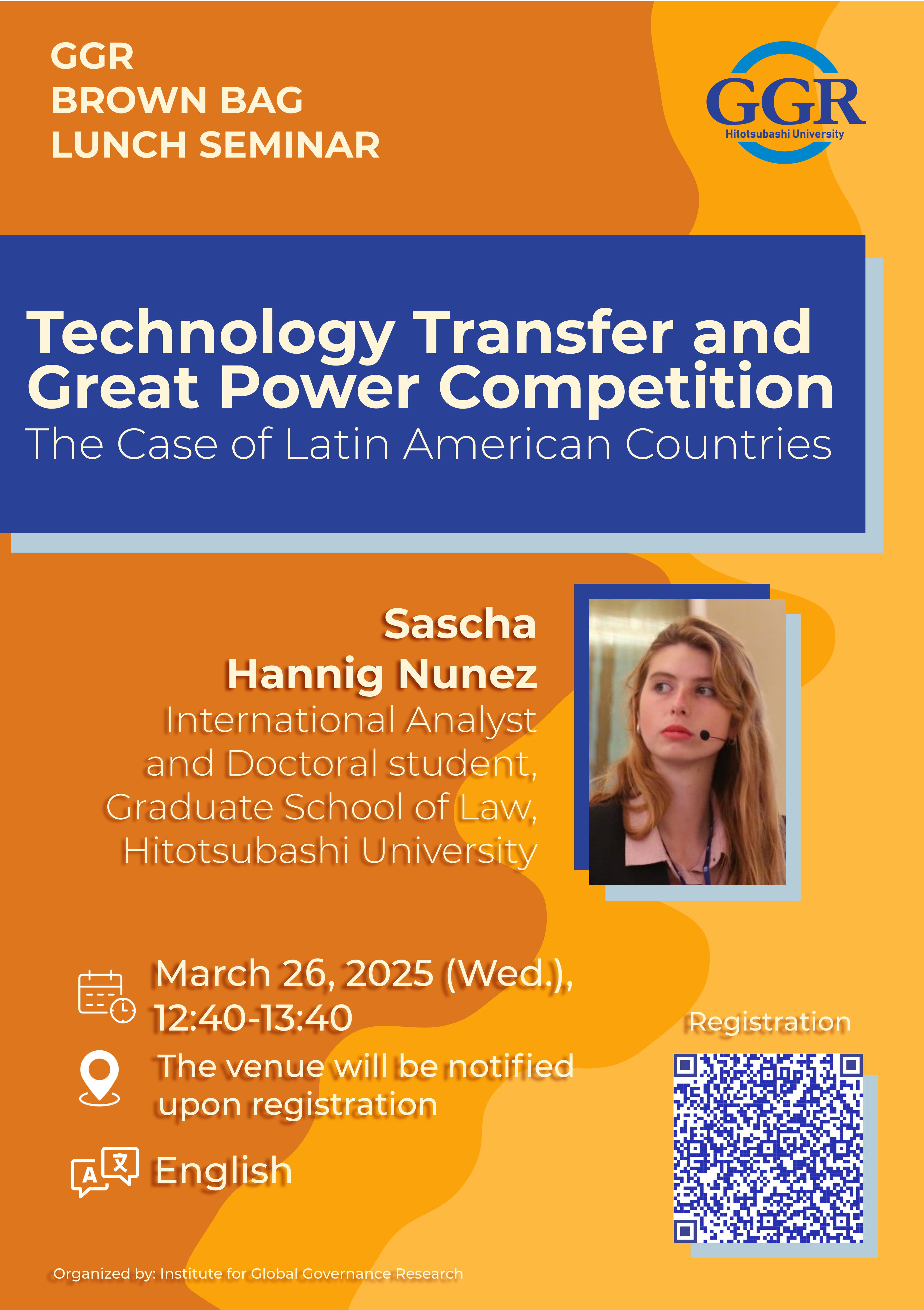 ■ Speaker: Sascha Hannig Nunez (International Analyst and Doctoral student, Graduate School of Law, Hitotsubashi University).