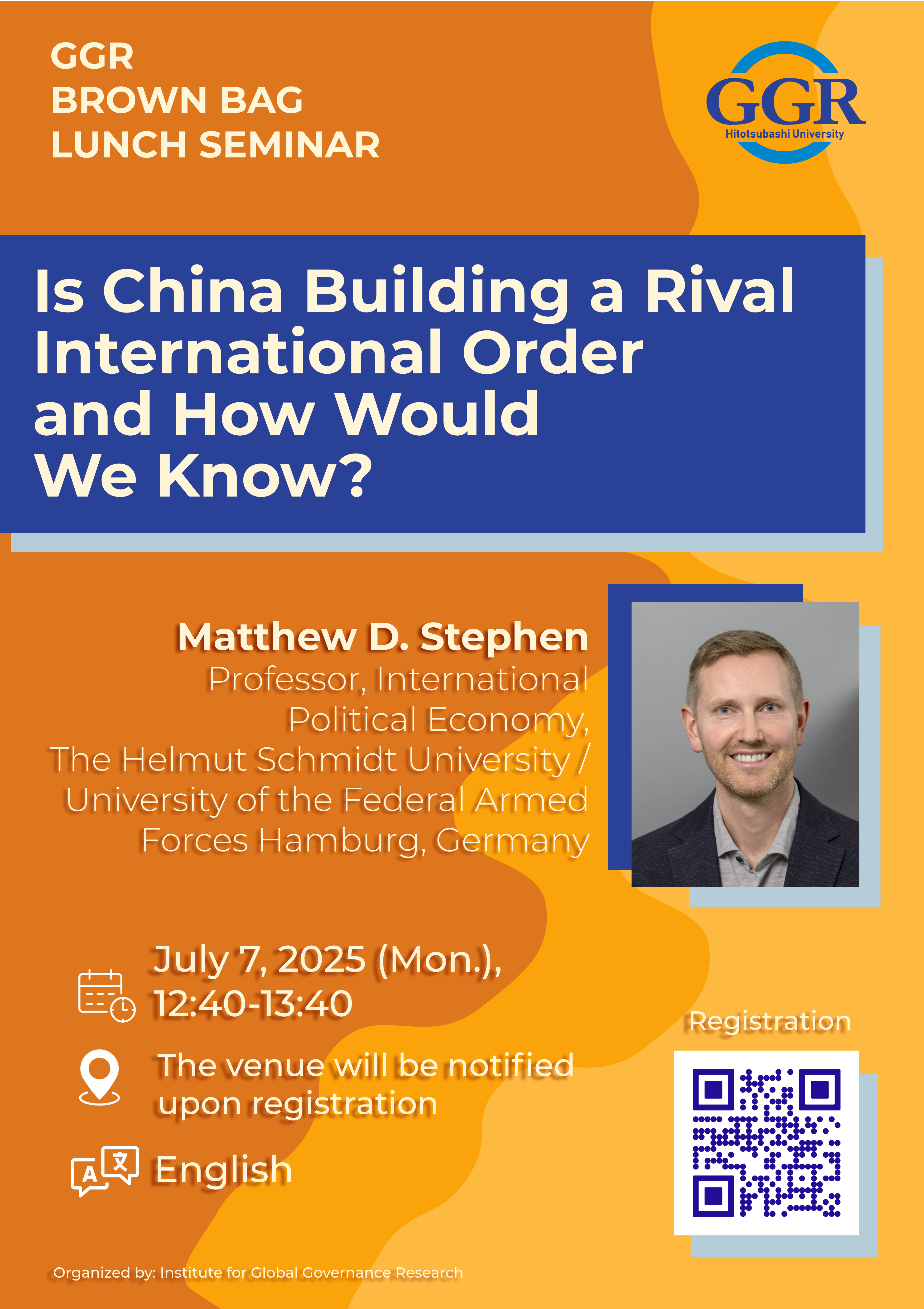 ■ Speaker: Matthew D. Stephen (Professor, International Political Economy, The Helmut Schmidt University / University of the Federal Armed Forces Hamburg, Germany).