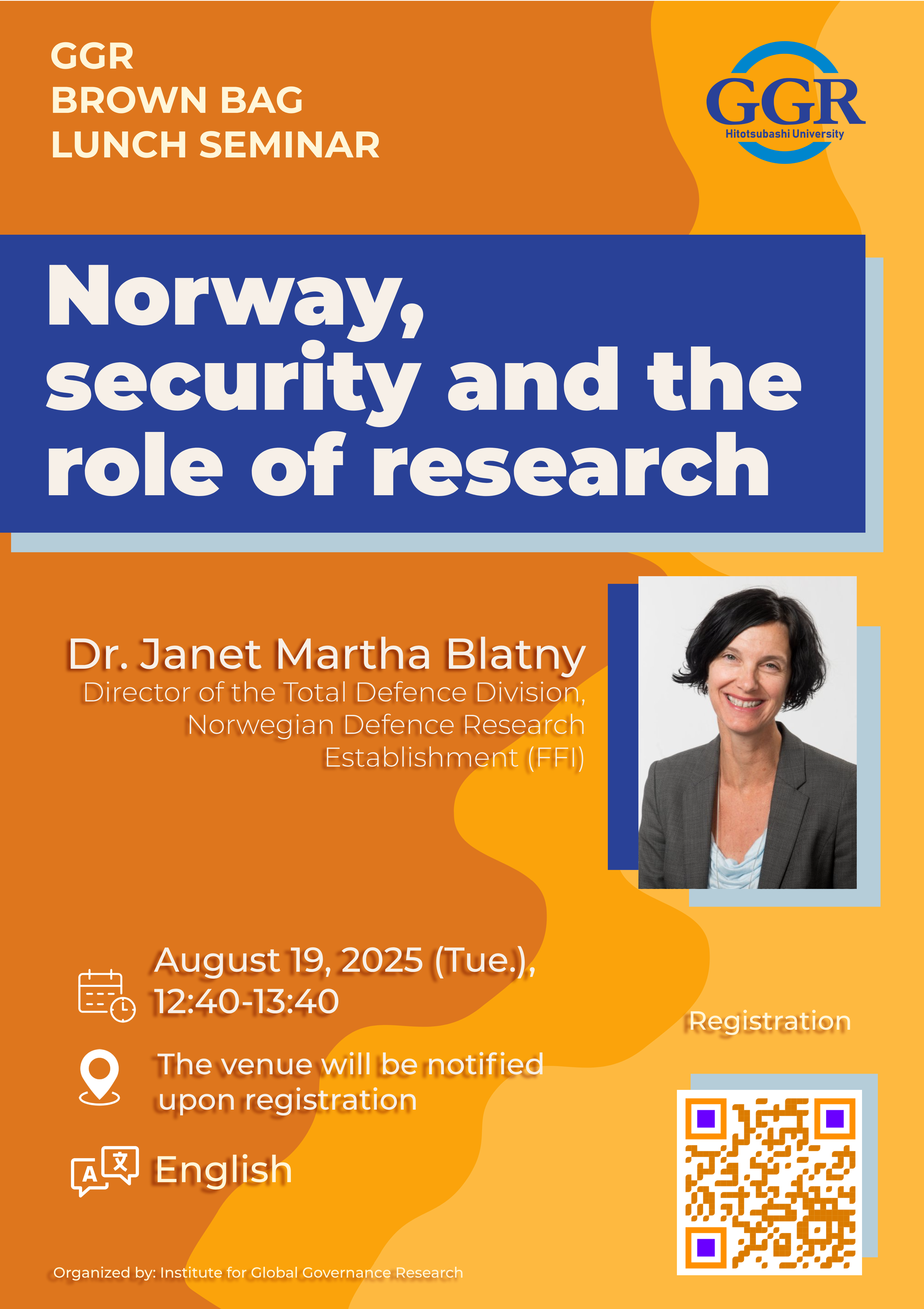 Speaker: Dr. Janet Martha Blatny [Director of the Total Defense Division, Norwegian Defense Research Establishment (FFI)]