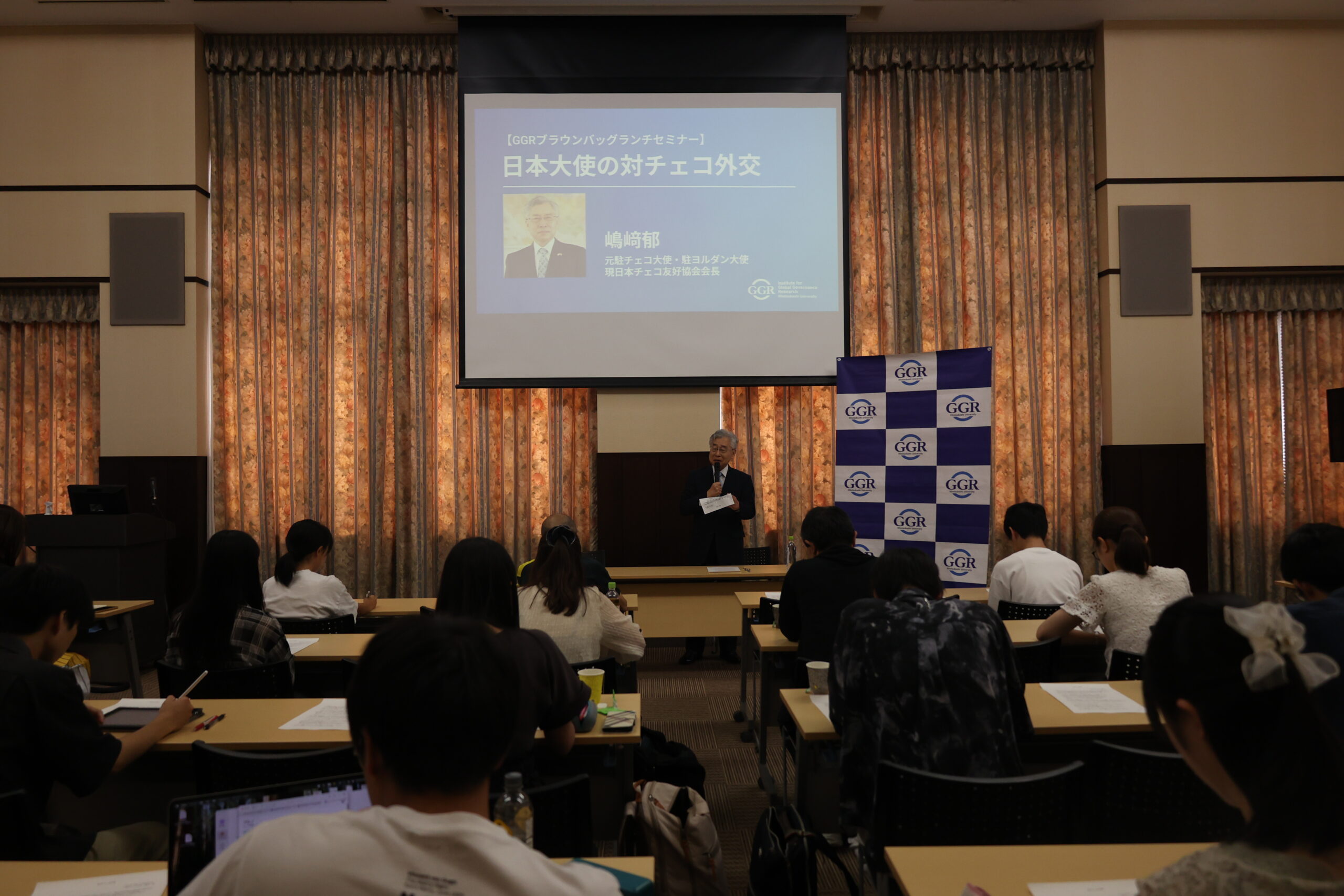 On September 30, 2025, the Institute for Global Governance Research (GGR) at Hitotsubashi University held the 43rd Brown Bag Lunch Seminar titled “Japanese Ambassador’s Diplomacy toward the Czech Republic.” The speaker was Ambassador Kaoru Shimazaki, former Ambassador of Japan to the Czech Republic and Jordan, and current Chairperson of the Japan Czech Friendship Association.